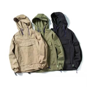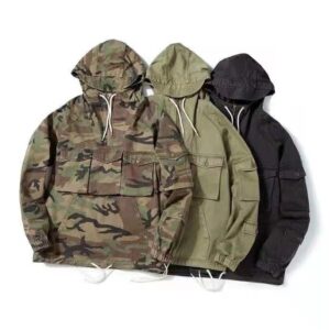 #0246 Multi bag jacket cotton herringbone diagonal gauze fabric field stormsuit style Hooded Jacket