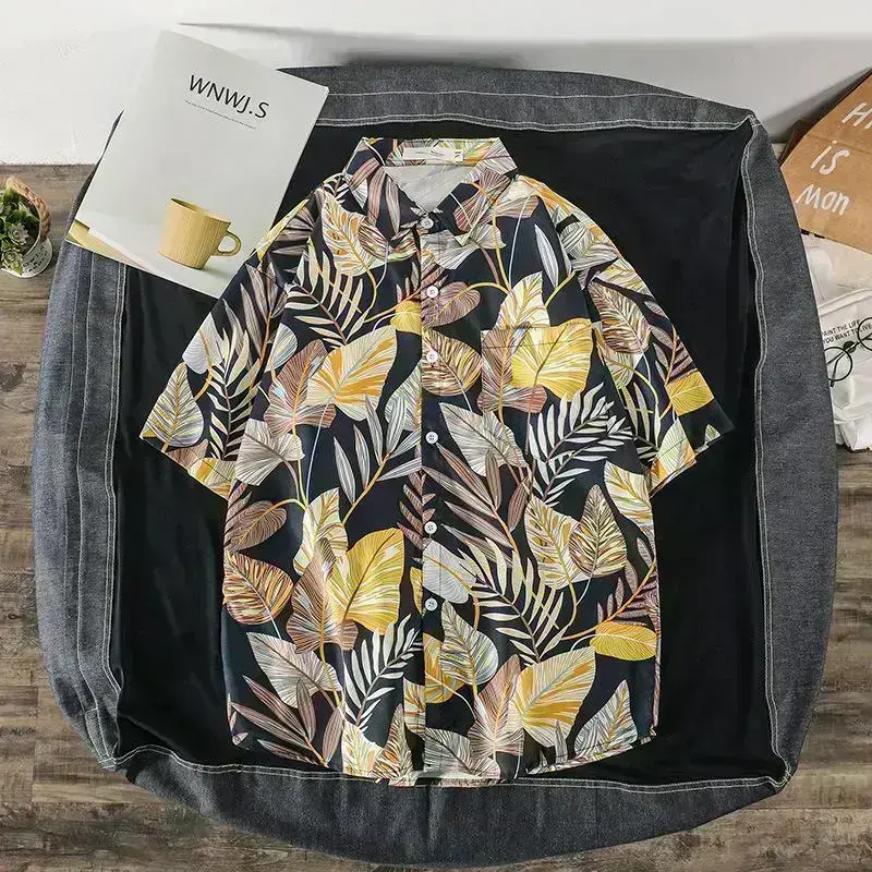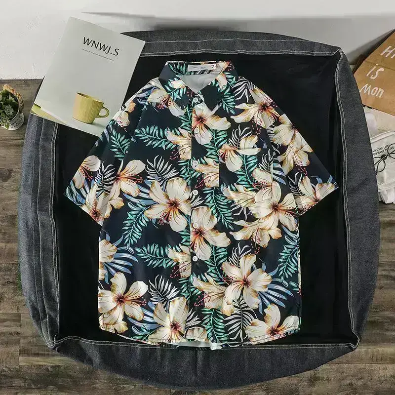Be the first to review “summer new Korean wind net red ins tide card print shirt loose trend couple beach travel shirt”
